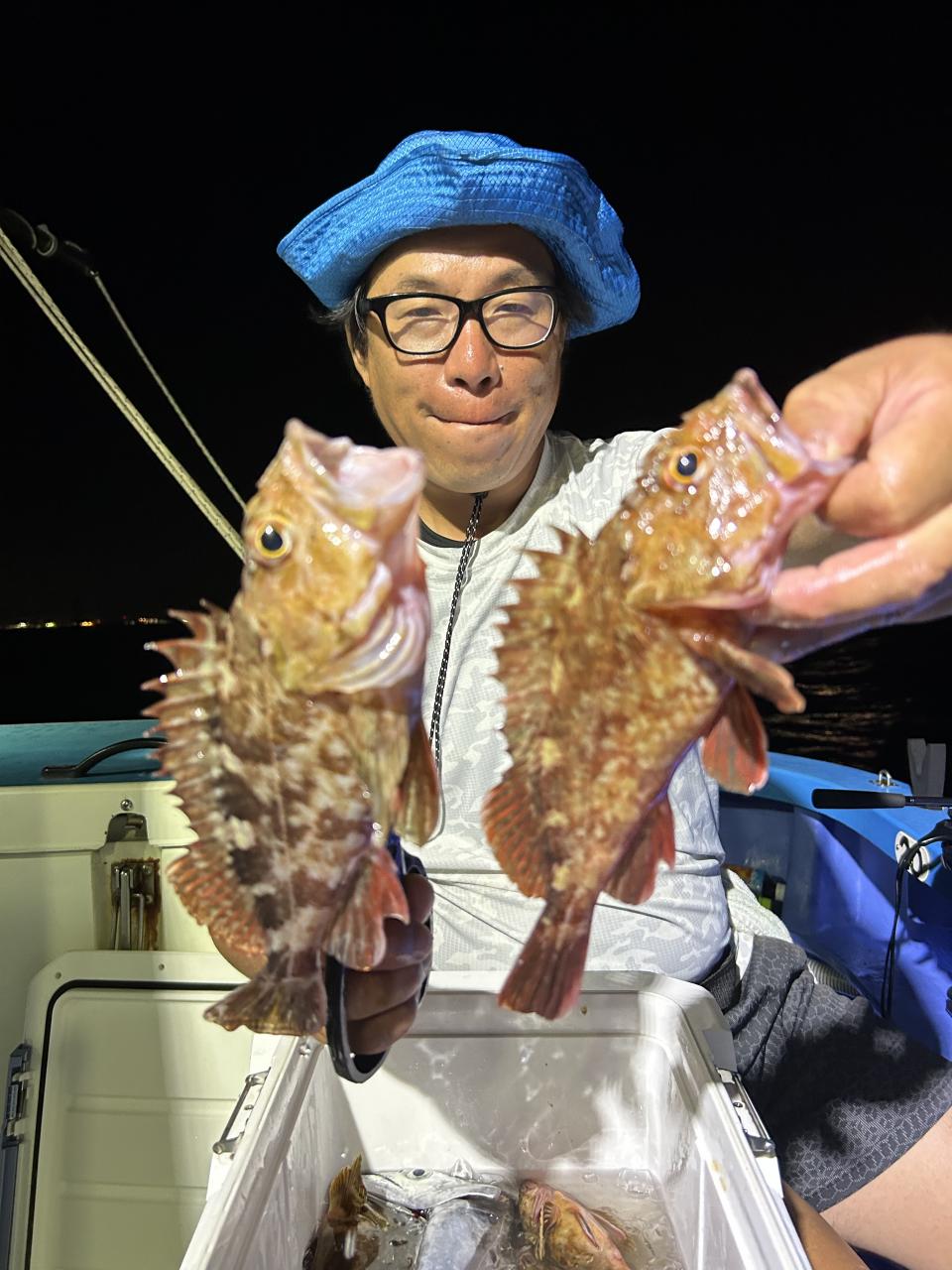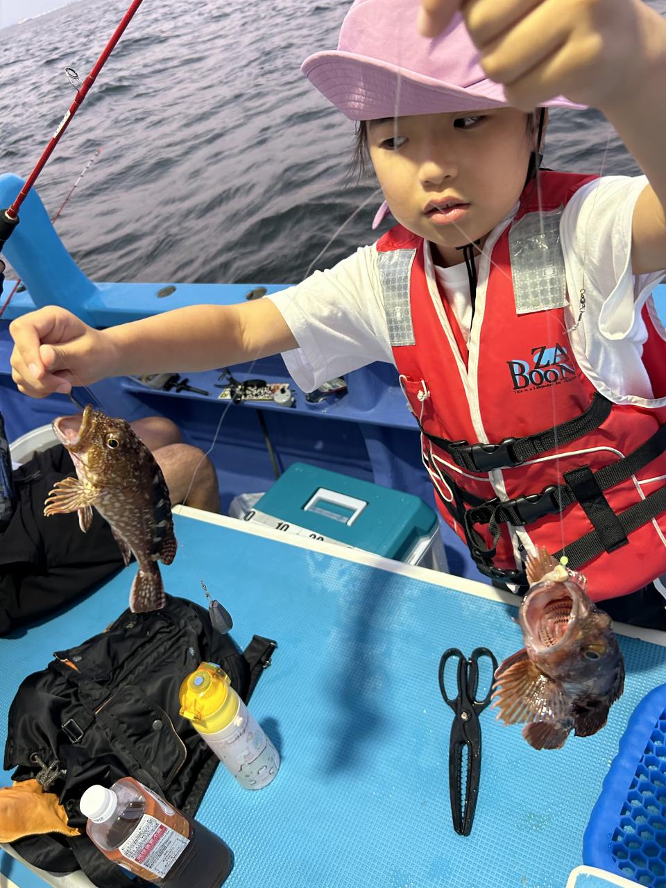 サイズは指3本前後平均で4〜5本クラスも多く釣れました!テンヤでは6本クラスも混じりました!