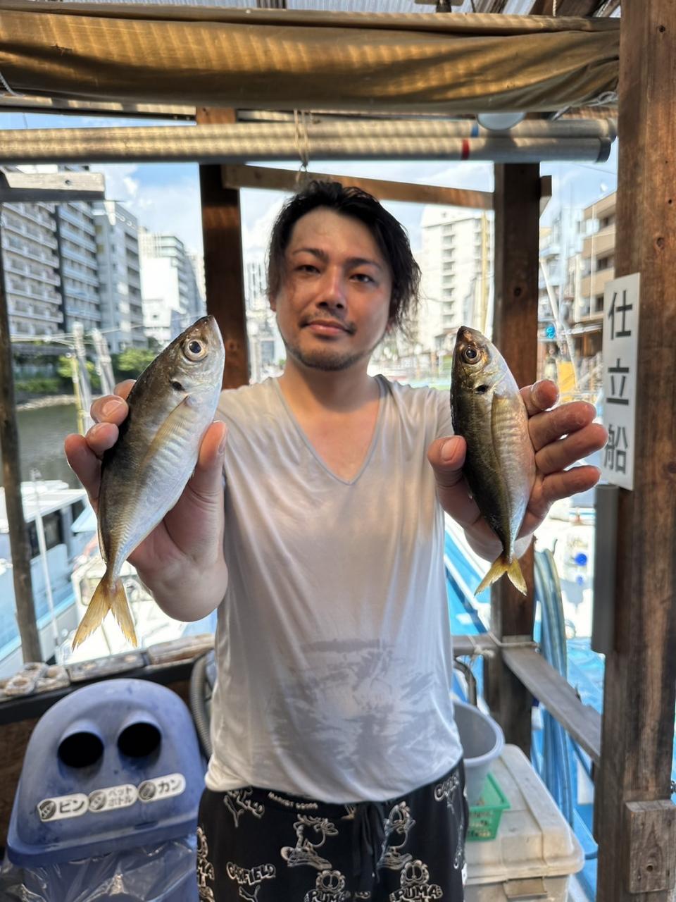 開始すぐからダブル有りで連チャン!少し間の空く時間もありますが、またすぐ反応入ってきてくれて終了まで釣れてくれました!タナはここでも浮き気味で、底までビシを落とすとアジが嫌がっていた感じなので底に落とさず上からタナ取りしてもらってました!