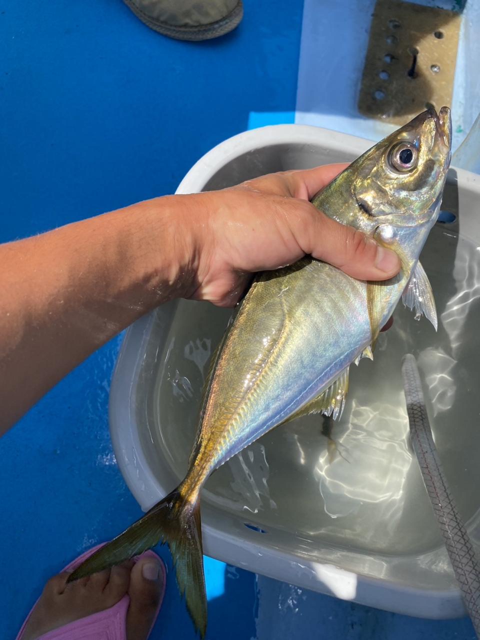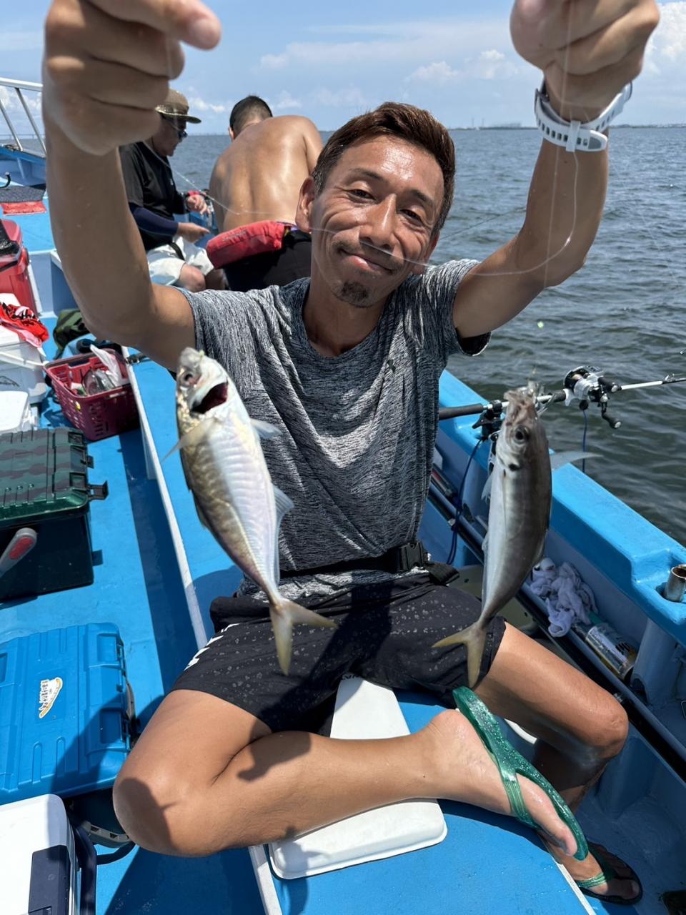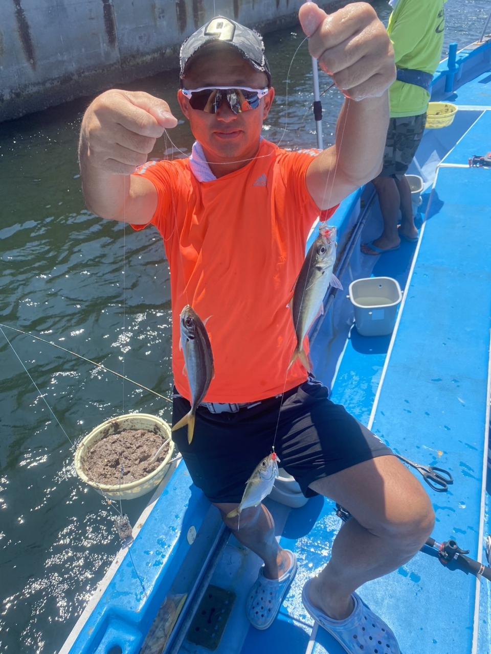久しぶりに朝から曇り空で少しは凌ぎやすそうな陽気でした。後はアジの御機嫌が良い事を祈るばかり。初めてチャレンジゲストさん中心ですから(毎度なんですが〜笑)ライバルが居ない所で1山当てたい気分です。でも、あまりにもスカが連発しちゃうとゲストさんも萎えちゃうし難しい所です。