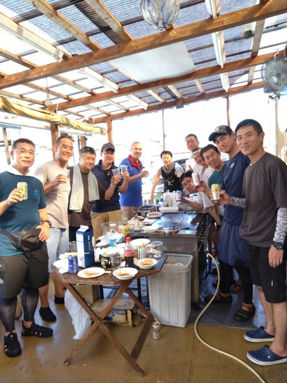 何とかパーティーの食材は確保出来ました。テラスに帰ってからはお待ちかね宴の開始です。釣り談義や雑談に花咲いて宴も盛り上がったのは言うまでもなく〜!