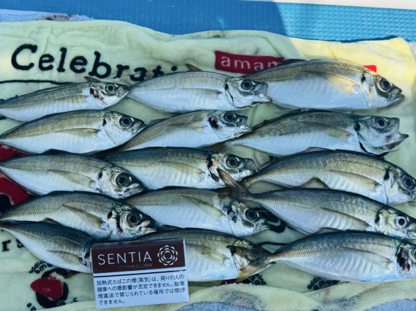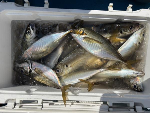 転々とやってましたが反応あっても口使わず、苦戦しました。途中仲間の船に呼んでいただき、やっとアジとご対面!20センチ前後、たまに25センチクラス釣れました!ありがとうございました!!